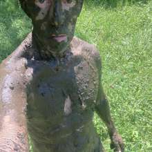 I take another step and I sink down to my knees into the brown creamy mud. I slowly pull my leg out and I walk back to the edge. I look down at my leg in the moonlight, seeing the thick mud caked onto it up to my knee and the rest of my body is dripping in sweat. I take a running dive into the mud and land face down. It feels so good. I stay that way for almost a minute letting the mud ooze up around my body. As I roll over, I can feel the mud ooze up between my legs, around my cock and balls. It makes me so hard. I pick up two handfuls of mud, holding them over my face and let the mud drop down on my face. I pick up some more mud and rub it into my coated chest. I play with my nipples. I scoop up a big handful of mud, reach between my legs and rub it on my coated balls.. The next two handfuls of mud are directly on my cock.