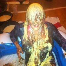 Eventually Candy sighed and said; "Well if you are going to get to your party, I guess we had better climb out of here and get you cleaned up." Caroline burst out laughing. "How on earth do you think I am going to be able to go to a Hunt Dinner and party looking like this?" she enquired. "I am an absolute wreck and this dress is fit for nothing. Still you are right; it is about time we got cleaned up; I for one am starting to get a bit cold." The two friends clambered out of the paddling pool; stripped off their dresses and, in their underwear, scooped as much goo as they could into buckets. They then padded gingerly across to the bathroom where they stripped off their remaining clothes and showered and washed their hair. Caroline was surprised just how much food adhered to her body.
