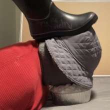 Maddie cut a mouth opening in my head sock and painted my lips pink. oh my, don't you just love the pink lipstick? Such a prissy sissy. lol. She then pushes a hat down atop my head and pulls it down tight. So pretty you are. Maddie positions me on my knees just at the side of the bed, hope your ready for your dildo cream pie, she laughs. Its my own creation, your gonna love it! She places the pie on the bed and steps up onto a chair, her black rubber boot is placed on the back of my neck. I was not expecting this from Maddie it is so not her. Oh sweetheart please don't do this, really I can't. Oh my darling all good sissies have to learn to suck a good cock, wouldn't you agree, well maybe but babe I am not a real sissy. Oh but you are tonight, she giggles. You want humiliation, you got it! Now kiss it. That's a good sissy tease it, lick it and taste my grey sock encased dildo. mmm oh yeah hows it taste? like my sweaty feet I assume.Maddie places her boot on the back of my head. lol Put a lip lock and that sock cock sissy bitch, get it nice and moist, really taste my feet. Oh yeah that's it up and down, not just the tip girl take more cock into them sissy pink lips. mmmppfff, no Mistress please don't make me, this is so humiliating. You wanted this, now you keep at it. She pushed my head down forcing the socked dildo deeper into my mouth. Oh yeah that a good Sissy take that sock sock in your throat. She keeps pushing down my nose and lips dipping in the pie now, mmmpppffff. I could get used to this, who knew this would be so liberating. The more she pushes the deeper my face goes into the pie and she is gagging me with her sweaty sock cock. oh yeah take it all bitch this is making me horny, lol Suck it like the sissy you are, you know you love this forced cock sucking, admit it your hard as hell right now. You will take that whole cock into your mouth like it or not, I wont stop until your face is buried in that pie. Get used to the size of that cock as later your will be sitting on for me!