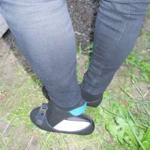 I took my shoes off as instructed, feeling a little bit self conscious of the bright turquoise heels and toes of my black socks! They looked really cute and sassy, I thought I'd just take them off and leave them with my shoes. I started to remove them but the presenter said "No Lauren, the point is to get your whole outfit dirty, no shoes are allowed but you have to wear your socks in the mud! The experiment won't work unless you get your socks dirty!" I did as I was told and pulled them back up firmly, secretly quite pleased that I at least wouldn't be barefoot in mud (that thought was scary!) As mentioned, I was wearing an almost new pair of smart, thin black socks with contrasting bright turquoise heels and toes. I'd chosen mainly black socks to match my black ballerinas as it was a cooler time of year and I didn't want cold feet! I remember thinking, yet again, how sassy and colourful they looked, and how vulnerable I felt as I padded over to the tank in them. The hard floor felt really cold through the thin socks too! The bright blue accents on the dark socks really stood out! I couldn't get my head around the fact that I was about to jump shoeless into the mud! I'd never really been muddy in my life, let alone in nice clothes and socks! But I couldn't shake the feeling that this was probably going to be very good fun! I was pretty much aching to get into that cool, dark sludge even if I did have to do it in my socks!
