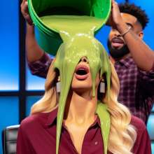 The host explained the rules of the game, and Sarah listened intently, her eyes sparkling with excitement. But then, he added a twist. "Now, Sarah, there's a chance you might get slimed today. If that happens, just remember to close your eyes, tilt your head back, and let it happen. Are you okay with that?"