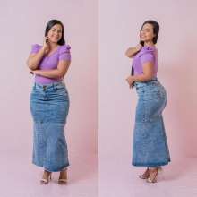 On another hot summer afternoon, I see Falla again, the lady who collects shells from the sea water. Now Falla was dressed in a very tight prewashed blue denim midi skirt a little wrinkled in front, sexy and a pink blouse. As in the previous story, Falla entered the water wearing sneakers. Falla was knee-deep in water looking for clams.