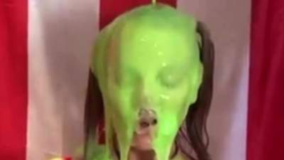 Amber's First Wetlook Wearing a Sexy Satin Dress
