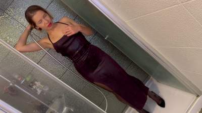 Getting Wet in Tight Velvet Dress and Ripping Pantyhose!