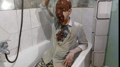 Wet Ostin in Pink Polo Shirt and Jeans also with Shampoo