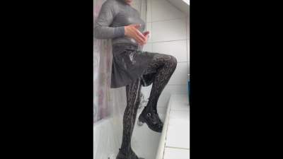 Purple Outfit Shower Soaking