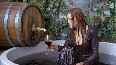 Carla Gets Wet in a Sexy Shiny Jumpsuit, Boots and a Shirt