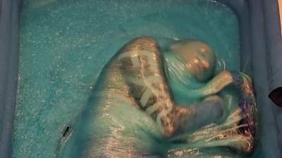 Jolissa Dives in the Pool Wearing Cargos and a Leather Top