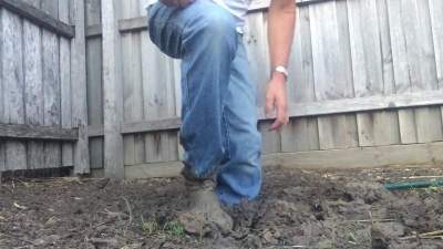 Iris Swims in a Denim Skirt, Boots, and Long Flannel Shirt