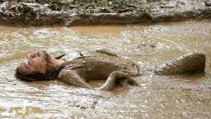 Well-dressed ladies wear expensive silk and satin outfits and uniforms into very wet and messy situations.