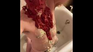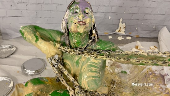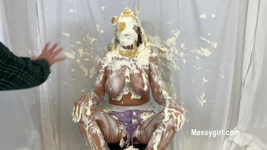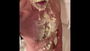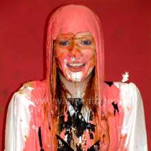 Surprised michiganpie1 with a big sloppy cream pie to the face
