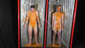 Guys and girls lube up with slimy nuru gel (methylcellulose / Natrasol type lotion) and massage them with their naked bodies. Then very happy endings...