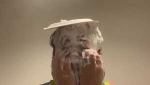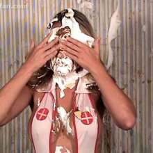 Surprised JustJade with a big sloppy cream pie to the face