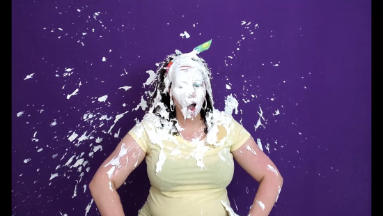 This immediately became one of my all-time favorite pie pics! I absolutely love this model, whatever her name is*, I absolutely love banana cream pies -- the quintessential in-yer-face flavor for my money -- and I love this coverage. DELICIOUS!!!