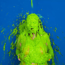 Smeared a handful of rainbow icing on Gooey Goof's butt
