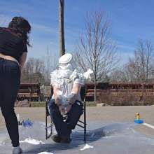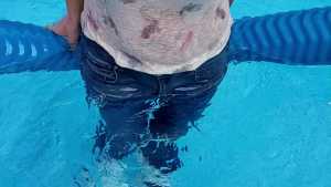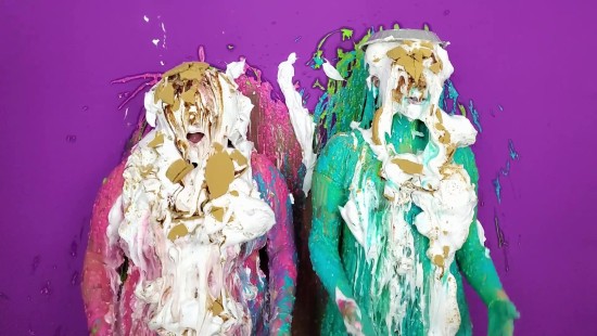 Babbleorieka picked MesssyHot as her entry vector to the WAM world. She is a painter and likes the colors that show up in my work. The shoot begins with her in a bathtub, still clad in white t-shirt and white panties. The initial slime pours cover her shirt and panties, saturating them both with thick green slime. She takes off her shirt as the slime continues. When we switch to extra thick blue slime, it actually manages to pull her bikini top off as it comes down! Lots of slime flows into the the purposely held bikini bottoms too. Eventually Babbleorieka is fully nude and covered in slime. She writhes in the tub for a while to experience all of the tactile sensations. Dual shaving foam cans are wielded next, spraying her with tons of shave foam. The foam and slime textures are allowed to mix, resulting in a minty looking froth pool. Scene ends as the tub starts to drain but you get a little insight into cleanup. There is also a file included that is a 240p slow motion capture of the slime exploding on her face.