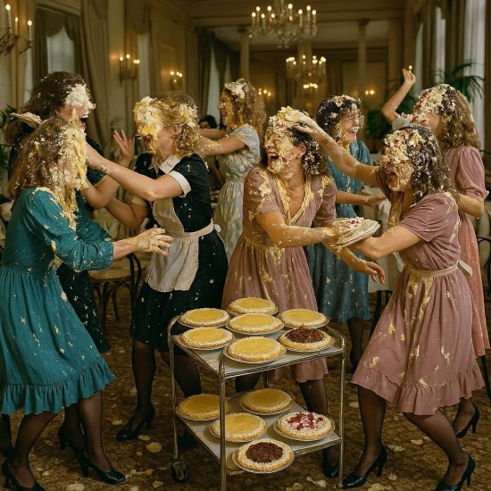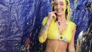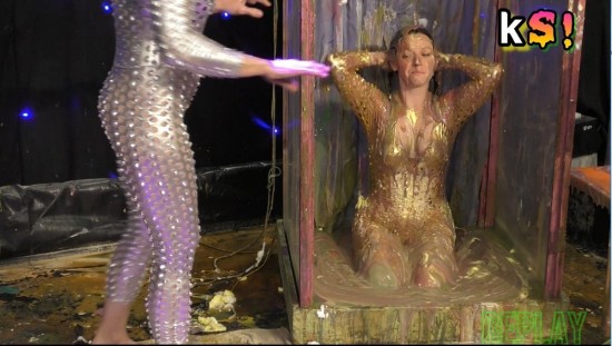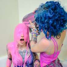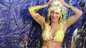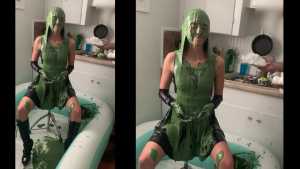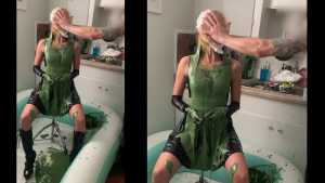 Ritzy, dressed-up girls get super-soaked in fake cum in a fake glory hole. They end up getting covered head-first, and ruin their expensive clothes i...