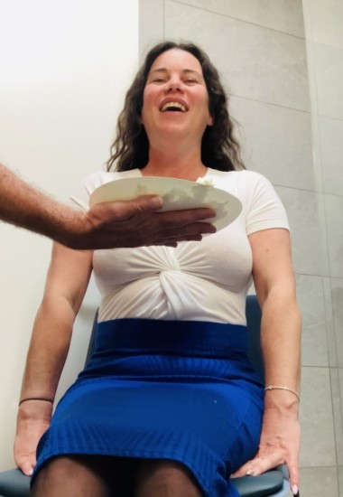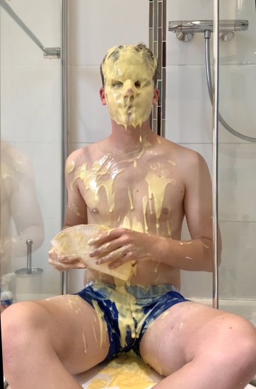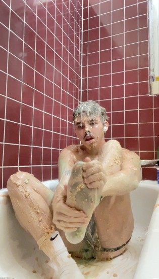 Tesla Elektra starts off by telling us about how she wanted to be slimed since seeing it in television. Everybody wished they were the one covered in slime! Being a raver, TE opted to have the music of dj CandyKid playing during her first slime experience. She starts off by getting her "slippery when wet" bikini bottoms filled with pink gunge. The neon pink slime is delivered all over her body as she dances to the rave music. For the second bucket, she drops to her knees and gets covered from front to back. The slime pour keeps coming as she rolls around in the accumulation of wetness. We add blue slime to the mix as the transition to blacklight occurs. Tesla gets lost in the warm rave vibes as the slime continues to flow. After getting most of her body covered, Tesla wants to kick it up a notch and gets her face and hair completely destroyed with messy goop. After all four buckets of slime are deployed, the shave cream comes out and she gets coated from head to toe and loves every moment. We unload two cans at a time on her each from a different direction. Eventually she is completely covered the mixed frothy textures of foam and slime combined.