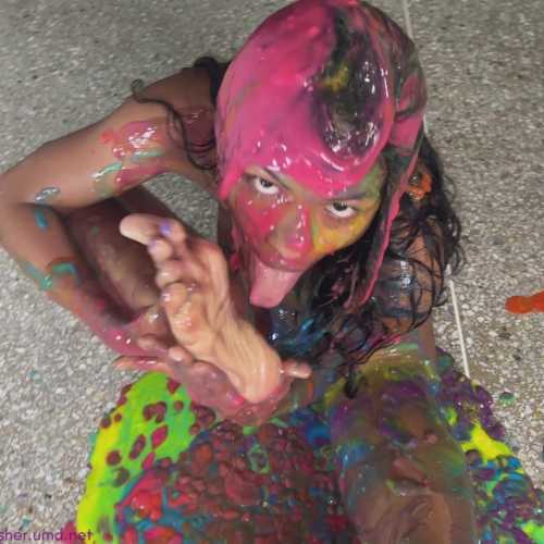 Sexy Robyn shows off her pretty feet and starts to self foot worship by licking her feet and sucking her toes. But her pleasure levels sky rocket when slime starts to fall on her from above... but this doesn't stop her sucking and licking her beautiful feet for maximum pleasure.