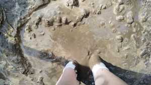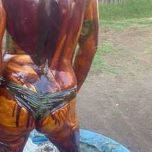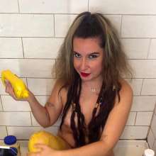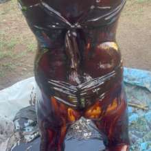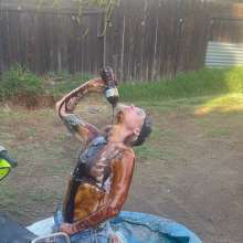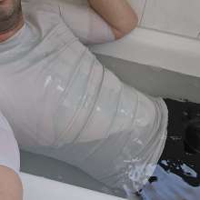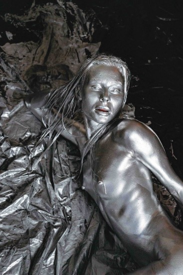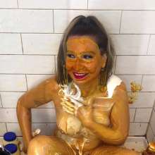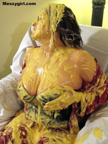 We present Synthetic Clay. This thick, viscous, orange-colored substance may resemble ordinary clay, but at the same time, it's unlike anything found in nature. It'll probably remind you of peanut butter. Is it light or heavy? Dry or wet? Does it stretch like caramel or hold its shape like play dough? It can do it all. Our synth-clay was created to be incredibly thick, bottomless, and capable of completely engulfing anyone. The girls' bodies sink slowly, gradually, but inexorably. The synth-clay clings to clothing so strongly that the girls have to undress to move. But no amount of struggling can prevent them from being completely submerged. Today, Tiny is testing our Synthetic Clay. She exposes her breasts, then completely immerses herself in the clay. The bonus video contains footage that was not included in the main video. Tiny is floundering, diving, emerges and escapes. Note: This is a fantasy scene intended to entertain fans of women in peril. Nobody was harmed during the filming of this scene.