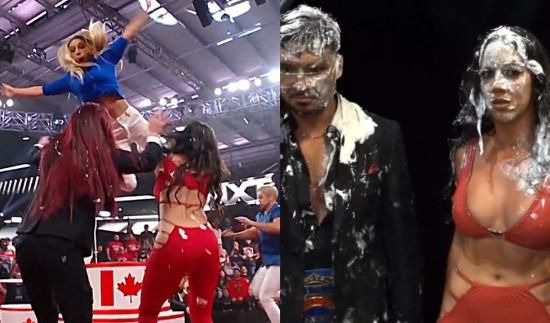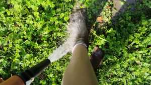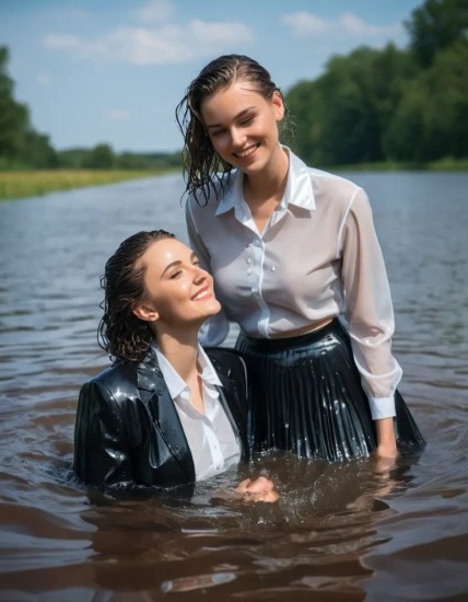 Well-dressed ladies wear expensive silk and satin outfits and uniforms into very wet and messy situations.