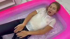 Ritzy, dressed-up girls get super-soaked in fake cum in a fake glory hole. They end up getting covered head-first, and ruin their expensive clothes i...