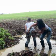 Commented on the scene Messymegans First Muddy Monday, "Both stunning girls. Particularly like Vicky's tits in that vest.."