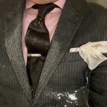 Commented on a photo: "I am not usually into formal wear getting wet, but you really make them and this entire series of wet/oil suit look really sexy for sure, wish i could have joined in with some good slipping and sliding around together