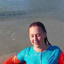 Commented on a forum photo: "Very sophisticated! She looks gorgeous as is in the water here, but I have to admit I'd love to see a sloppy coconut cream pie added to her ensemble. . ."