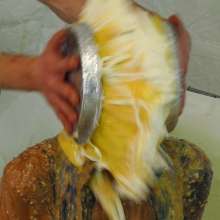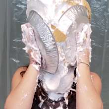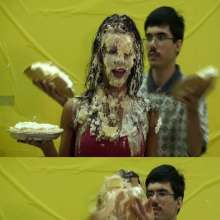 Commented on a photo: "The first pie on top of the head is really fun - splatters all over the shoulders and chest, but you can still see the shocked reaction. Nice work!"