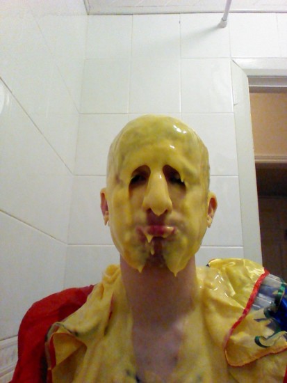 Covered Lucinda's face with mushy peas