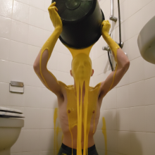 Poured a bucket of chocolate down TotheMax's pants