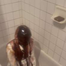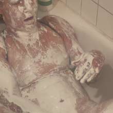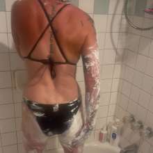 Commented on a photo: "In tight jeans, t-shirt and coat in the bathtub"