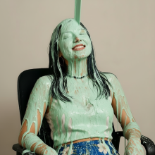 Surprised pielipstick CD with a big sloppy cream pie to the face