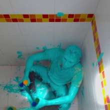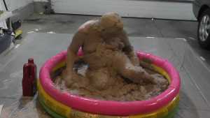 I cum with my magic wand while still wearing my bikini bottom, and then cum with it on my bare pussy! I completely cake my head with frosting... I cum with my face unrecognizably messy! Then I cover my whole body with pounds of buttercream frosting and cum again! I even turn around and sit on my magic wand! I take off my socks exposing the only clean part of my body... my bare feet! I put frosting on my toes and suck them off while I cum!