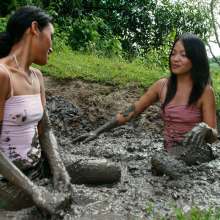 Commented on a photo: "The sight (dripping wet, clothes clingy and shiny) and the sound (6 squelching shoes) must have been great!"