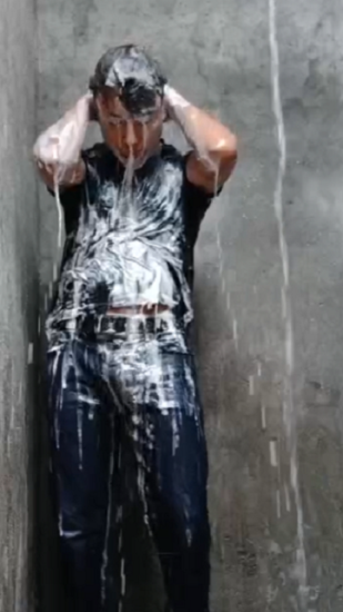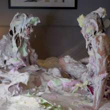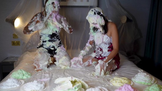 Rubbed MessyMegan down on an inflatable covered with shaving cream