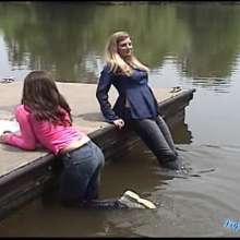 Well-dressed ladies wear expensive silk and satin outfits and uniforms into very wet and messy situations.