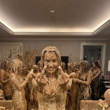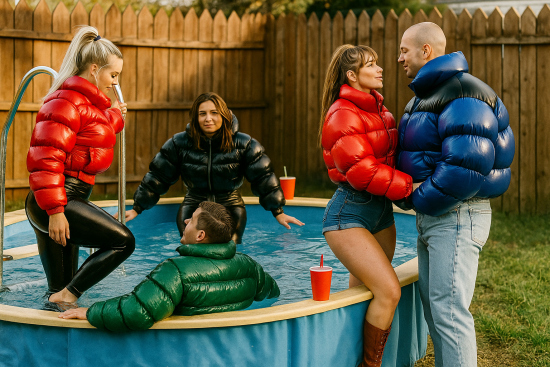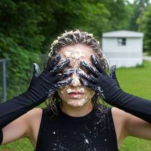 Ritzy, dressed-up girls get super-soaked in fake cum in a fake glory hole. They end up getting covered head-first, and ruin their expensive clothes i...