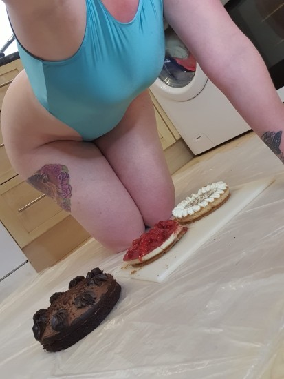 Commented on a forum photo: "My wife does pie sitting and cake sitting and when we tired out the uk gunge she liked so much we let me use the the double ended dildo on her and she was totally fine When we first were dating I went down on her after a sesh and that gave her a UTI prob the sugar. So we r olannning another gunge sesh with oral, or dildos or sex or some combo (I'll hopefully pie and slime her after all that)"