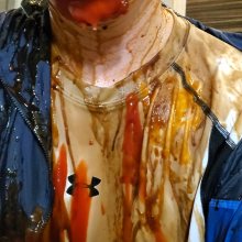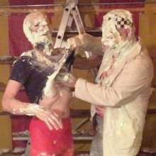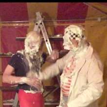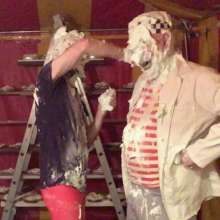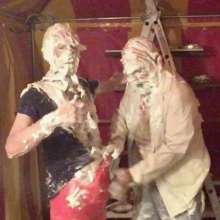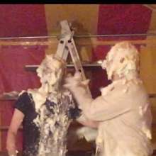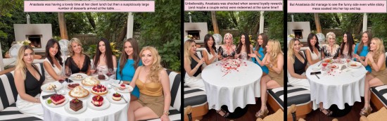 It's Tamsin Riley v The Invisible Woman. Spoiler: Tamsin Riley loses and gets gunged. Your host welcomes you to "Just Desserts," a gameshow where contestants can seek to get their opponent gunged... but which girl will end up receiving their Just Desserts! In this show Tamsin Riley takes on the Invisible Woman and after they outline why they want to give their opponent her "Just Desserts," we play games to determine who gets gunged. In this case a card game and a quiz are played. Tamsin, replete in gameshow t-shirt and black cycle shorts, is no match for the Invisible Woman and so it's the Invisible Woman who is allowed to get her own back, and Tamsin who must take a trip to the tank, and receives her "Just Desserts"