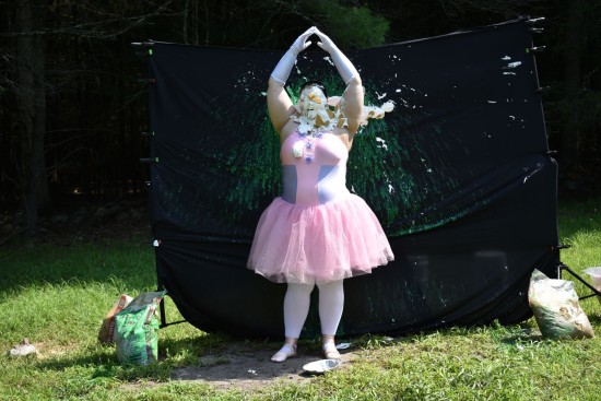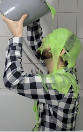 Dressed in a smart office outfit of a black bib dress over a lightweight orange jumper, with black tights and cute little leather ankle boots, Lily Kink has had a hard day at the office, and really needs to unwind and relax. What better way to do that than to totally destroy her office outfit with lashings of creamy custard and full bottles of golden syrup! She starts by pulling her dress up and filling her rather nice green panties, before pulling the dress back down as if nothing is happening, even as she's getting seriously squelchy down below. Next she fills her jumper, and the front of her dress, all designed to give her the maximum feeling before the mess starts to show through. Except that doesn't take long, ans very quickly we start to see the custard in her dress start to come through as she moves and enjoys the feeling of her very squelchy custard-filled undrwear. Those cute heeled boots come off, get well filled with gloop, and then she slides her tights-clad feet back into them, squelch! By the end of the scene she is reduced to custard and syrup drenched ruin, dress and tights drenched, boots filled and covered, and of course a full messy shampoo and a final full milk facial. There's a separate hosedown hairwash video, and a detailed high-res photoset, all included in the release. Lily likes to get messy!