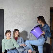 Moana is tired of Layla's punishments, so she's planned a surprise to get revenge for everything the wicked Layla has done to her! Waiting for the perfect opportunity, Moana manages to catch Layla off guard and take her to the place where she keeps all the disgusting ingredients she plans to use to ruin her hair and her new clothes, since Layla was ready to go on a date. The first of the disgusting ingredients for revenge is sardines. Their characteristic smell drives Layla crazy since she's tied up and can't defend herself. Her hair will end up smelling awful, and she knows it. Then flour and butter make their appearance, leaving her hair greasy and tangled! Tomato sauce and mustard were essential to continue the punishment. Moana is clearly enjoying herself, feeling that just seeing the humiliated face of the wicked Layla is completely worth it. But the final touch is the most shocking: gifts from farm animals had been collected for days to leave poor Layla with a hellish smell all over her body for weeks! Perfect revenge! Moana ends up happy, but we know Layla won't get away with it for long, so enjoy this epic mess, lovers of all things savory and Latinas getting dirty!