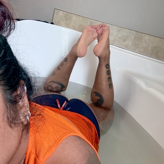 Mercy Muse is a model formerly known as Smutty Chums and Pixxii Stixx. She has had a couple of cake experiences with MessyHot but wanted to try out some slime. The shoot starts clad in a bikini while she gets blue slime poured over her. Mercy brought along a monster themed sex toy she wanted to try out, and since this shoot was near halloween, it felt like the perfect time. After demonstrating its use in several positions, she pulls on a tight white dress and takes some more green and blue slimes. To finish the scene, Mercy is covered in shave foam as well.