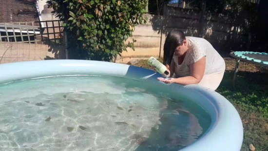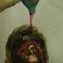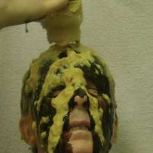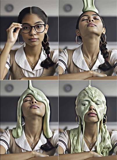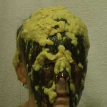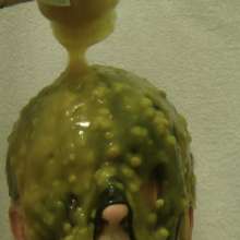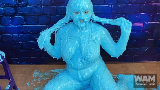 Ana and her friend are both already messy, but there's plenty of slimes left unused from the day's filming. They decide to play a one off game of "higher card wins" and Ana loses. Ana then gets all the remaining jugs of slime dumped over her. It turns out there was a pie left too... so she gets a surprise pie at the end! A light hearted and fun scene.