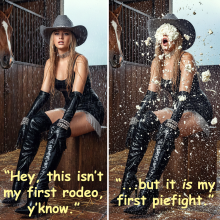 Commented on a photo: "If I saw a pie balanced on your belly like those other pictures, I would NOT be able to resist flipping it up and smushing it in your face. It's just too satisfying! And you need it. You also need a lot more pies in the face, but this is a very nice start."