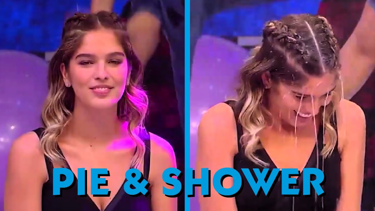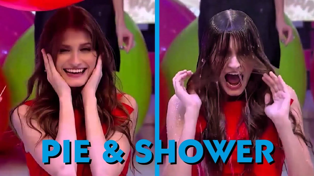 Surprised Messy Irina with a big sloppy cream pie to the face