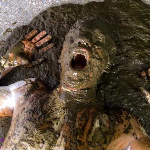 Commented on the scene A Mud Bath with White Clothes, "You shouldn't do that to yourself let me dump that on you. Then we can mess around"