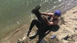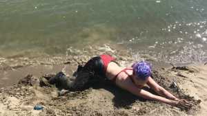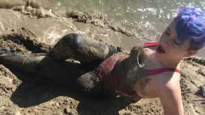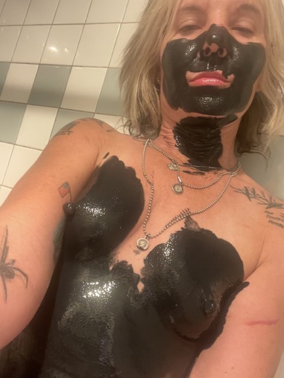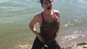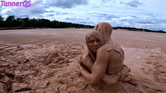 How fun it is to have to go into the pit to stir all the clay and hydrate it. I couldn't miss this opportunity to record the moment so you can join me in the fun. Wearing denim overalls, a sheer blouse, and my cowboy boots, I was ready to dive into all that mud, which over the days had become really thick and sticky. After covering myself completely in all the mud, I took off my boots to continue the fun barefoot. I also collected a huge amount of mud (a huge mountain) and dove in headfirst, literally up to my shoulders. It was so incredible! You are my special guests, so don't miss this fun and muddy adventure!
