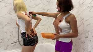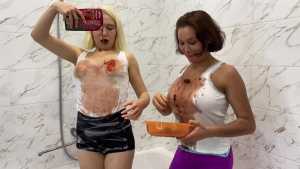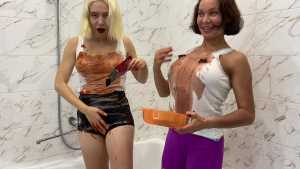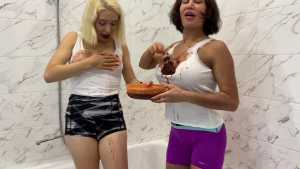 FemDom: "Poor" Guy Pied and Slimed By Hot Girls